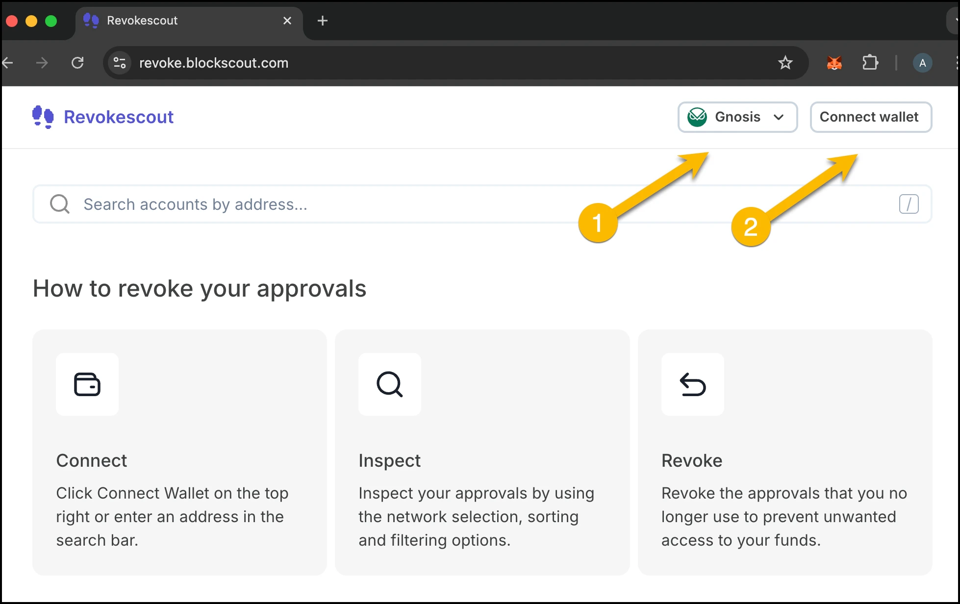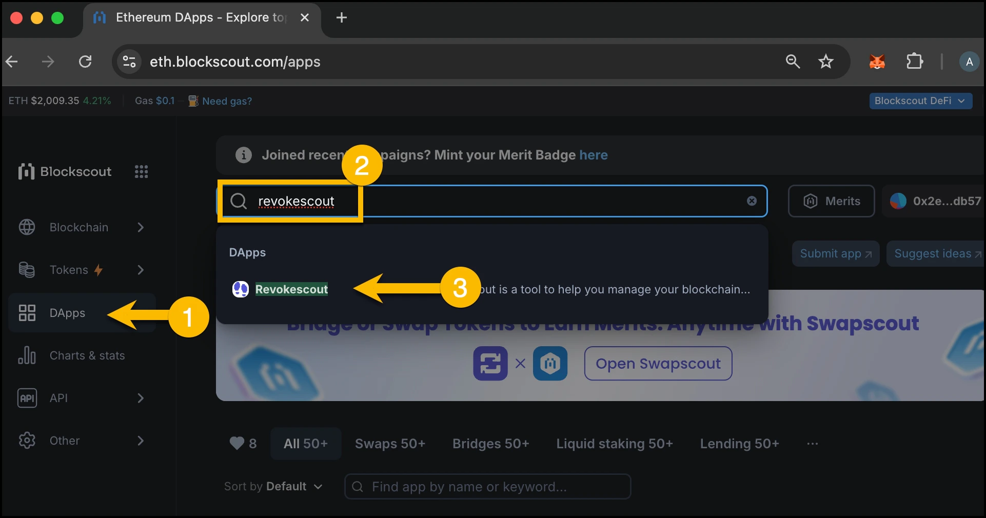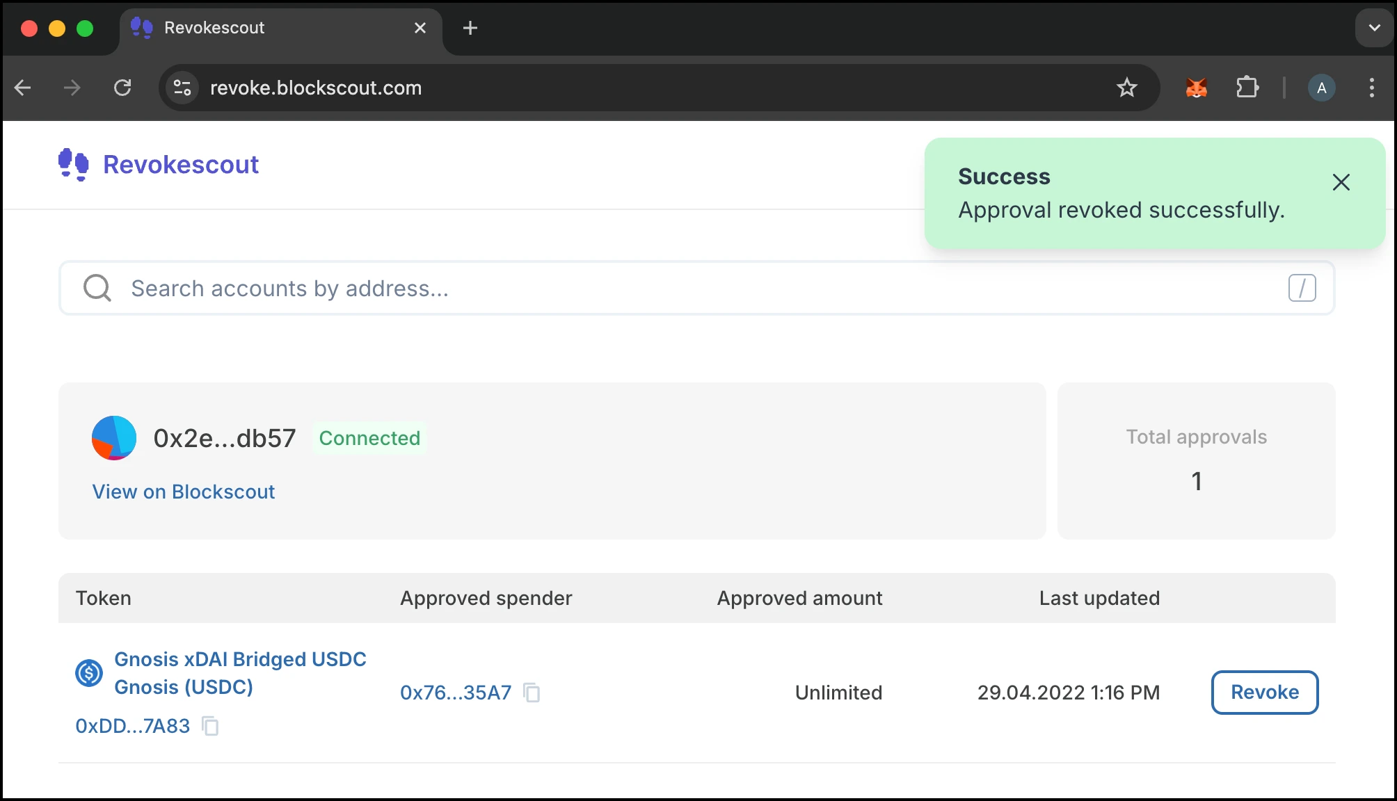Revoke can be accessed directly via the Essential Dapps menu or as an app via the Dappscout interface in Blockscout on supported chains.