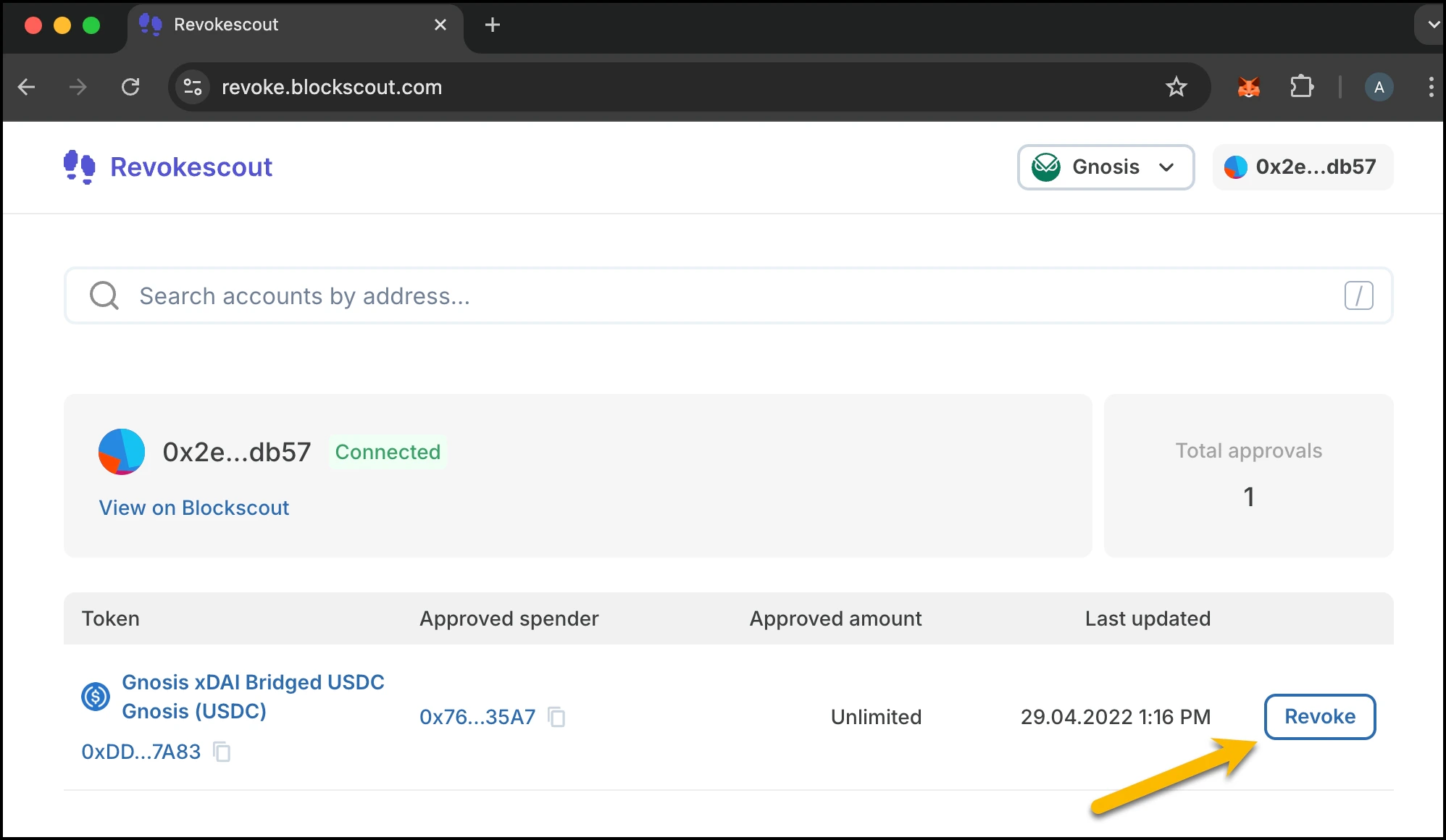1. Review any allowances and click the Revoke button for those you want to revoke.