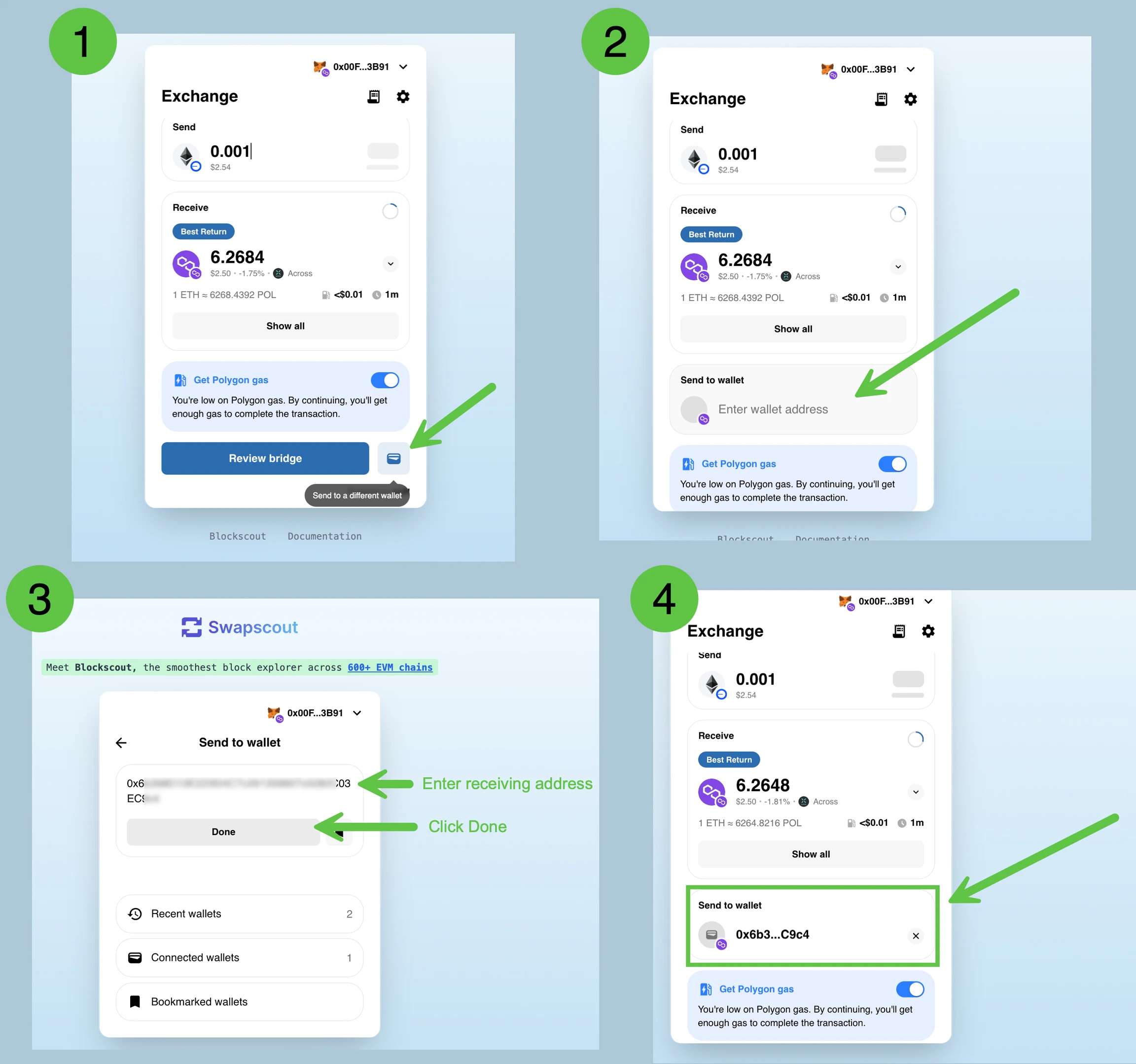 Swap, bridge and send tokens to another wallet