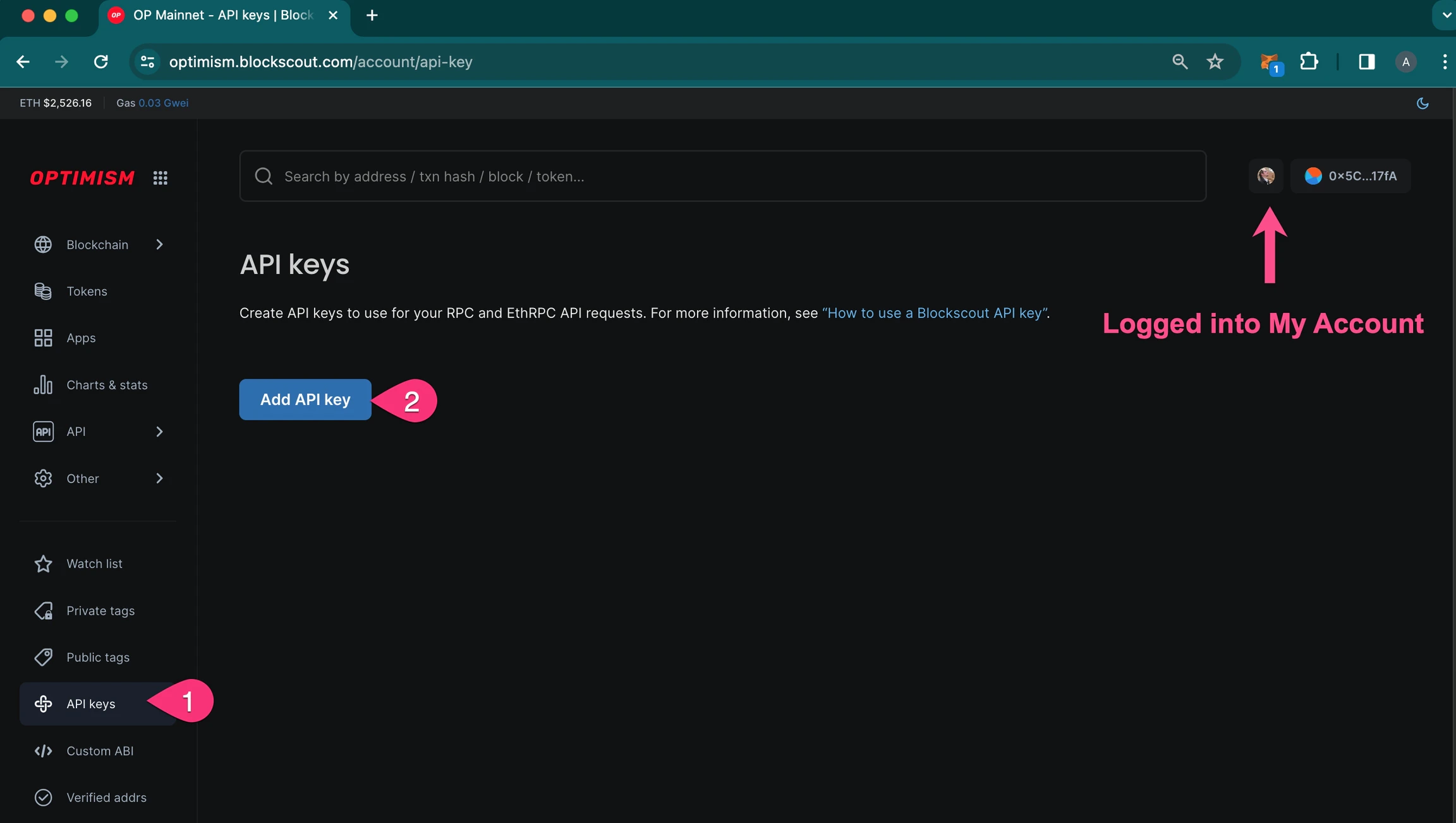 1) Login to My Account in Blockscout <login instructions> to get started. Once logged in: